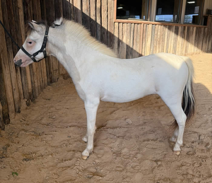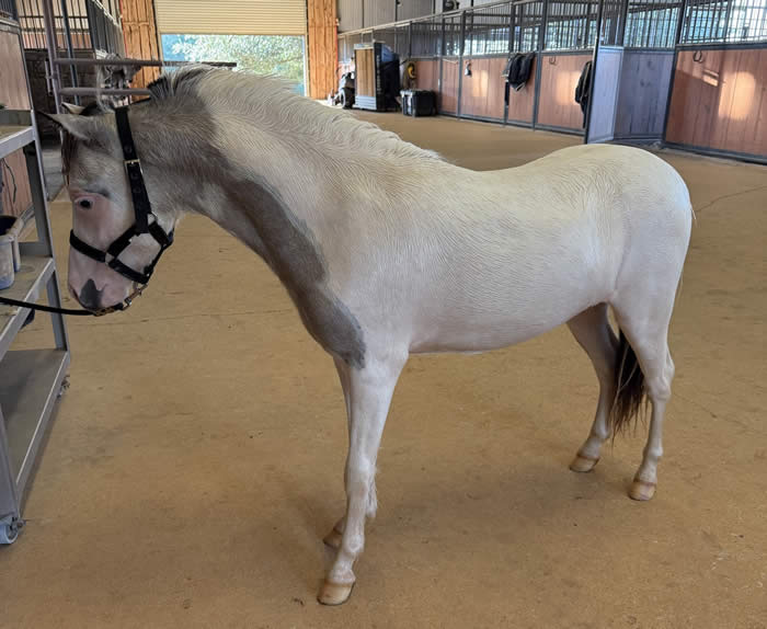 This brilliant young stallion, currently stands 33.75" and projected to mature around 35".