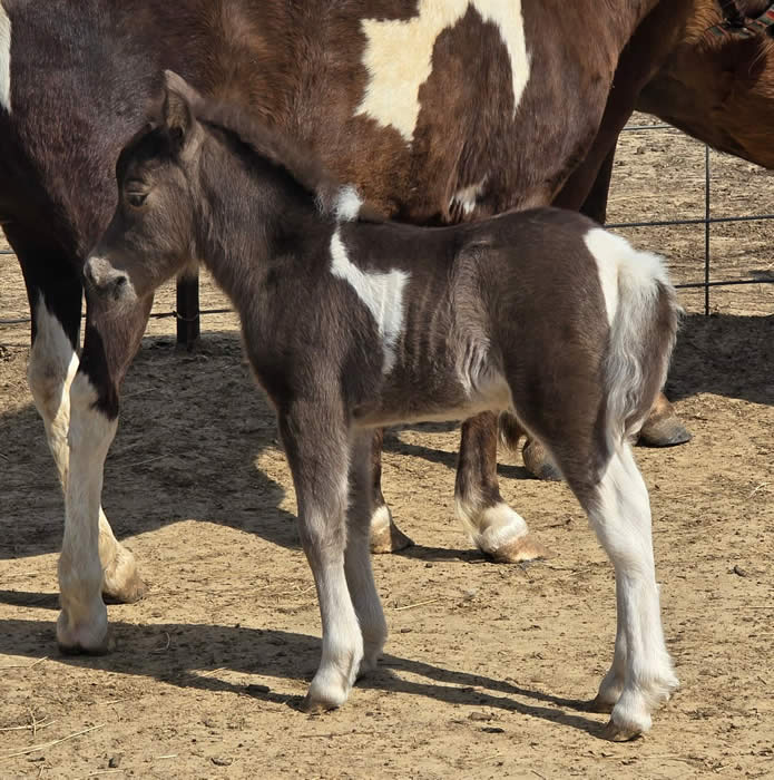 Storm is a proven producer, siring his first offspring in 2025 - a beautiful colorful, show quality filly (pictured at left)