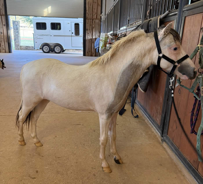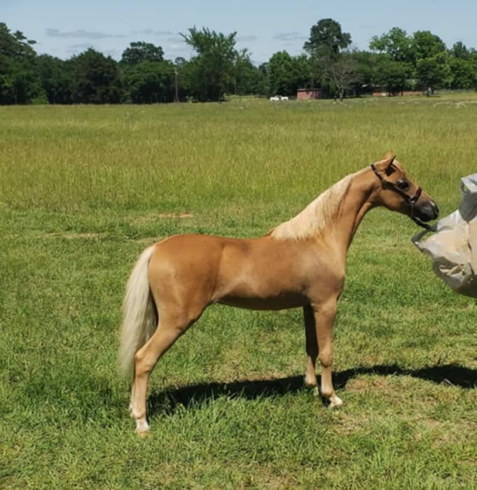 This brilliant young stallion, currently stands 33.75" and projected to mature around 35".
