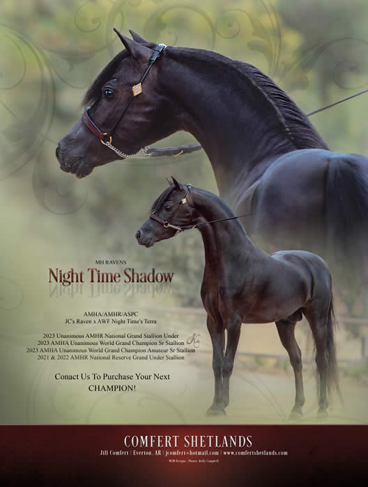 Grace's sire, "GAMBLER" (MH RAVENS NIGHT TIME SHADOW) took the show ring by STORM a few years ago, besting some incredible stallions to be awarded AMHR NATIONAL GRAND CHAMPION, UNDER STALLION.